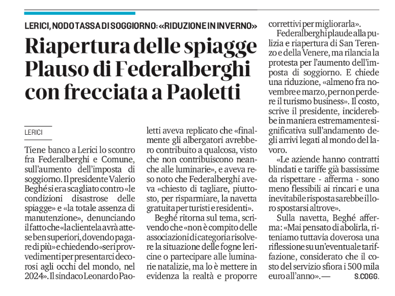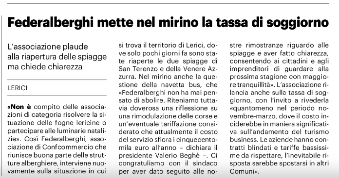 A tre mesi dall’inizio di stagione Federalberghi descrive la realtà sullo stato di Lerici