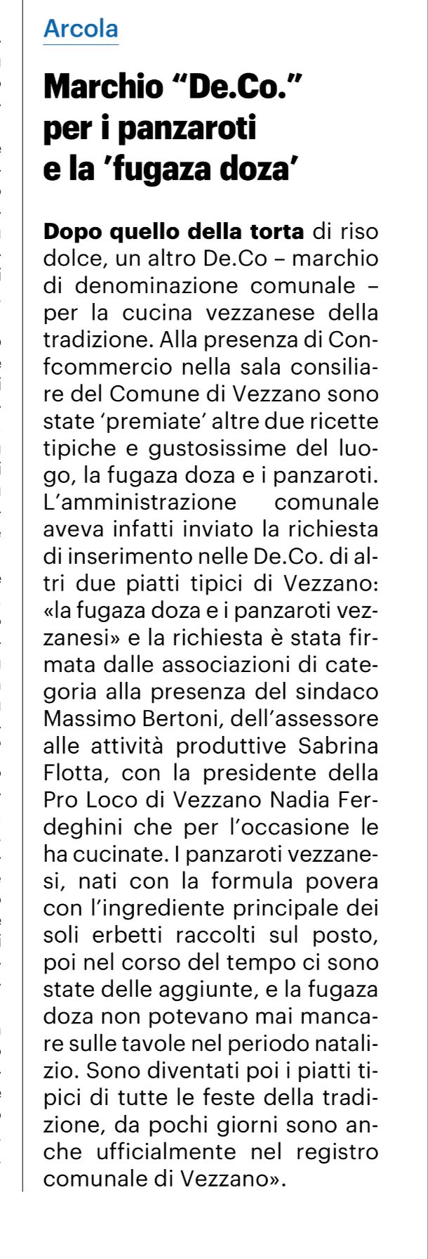 Fugaza doza e panzaroti vezzanesi otterranno il marchio De.Co. Oggi la richiesta protocollata dal Comune di Vezzano Ligure